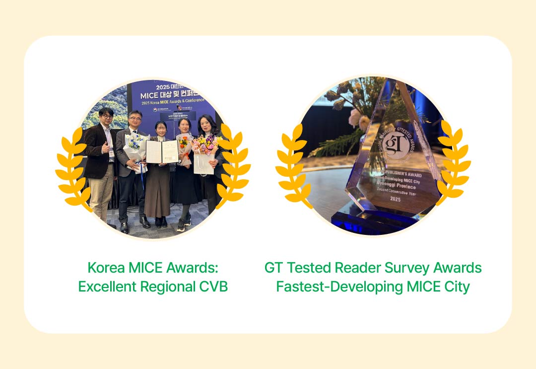 In November 2025, the Gyeonggi Tourism Organization won the Excellent Regional CVB category at the Korea MICE Awards, followed by its remarkable selection on December 17 as the Fastest-Developing MICE City in the GT Tested Reader Survey Awards!