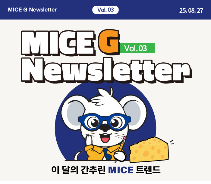 경기마이스의 새로운 로고, 어떤 느낌이 드시나요? 마이스쥐 뉴스레터도 경기도의 다채로운 매력이 퐁당! 빠지실 수 있도록 더욱 다양한 MICE 이슈와 트렌드, 그리고 실용적인 정보들을 전달해 드리겠습니다. 매달 빠짐없이 전해드리는 소식 속에는 놓치면 아쉬운 다양한 정보와 실제 사례까지 알차게 담겨 있으니, 이번 호도 끝까지 함께해주세요! 지금부터 9월호 마이스쥐 뉴스레터를 활짝 열어봅니다.✨